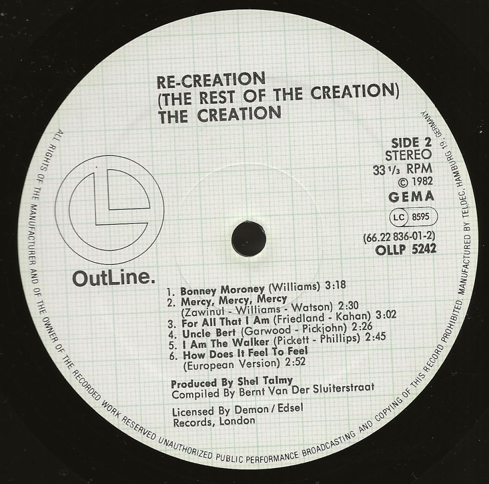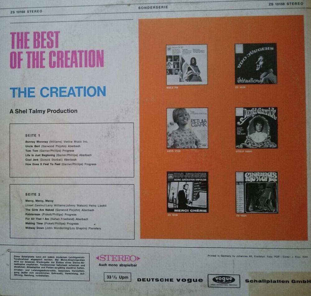In England floppte die Gruppe, aber in Deutschland hatten sie insbesondere 1967 eine große Fangemeinde. Ähnlich wie The Who und The Kinks hatten The Creation einen harten Gitarrensound. Ihr Gitarrist Eddie Phillips war der erste, der die Gitarre mit einem Geigenbogen spielte und bis dahin unbekannte Soundeffekte erzielte. Wegen interner Probleme stiegen Garner und Phillips 1967 aus, als Ersatz kamen Kim Gardner (Bass) und Ron Wood (Gitarre), die beide zuvor bei Santa Barbara Machine Head gespielt hatten.