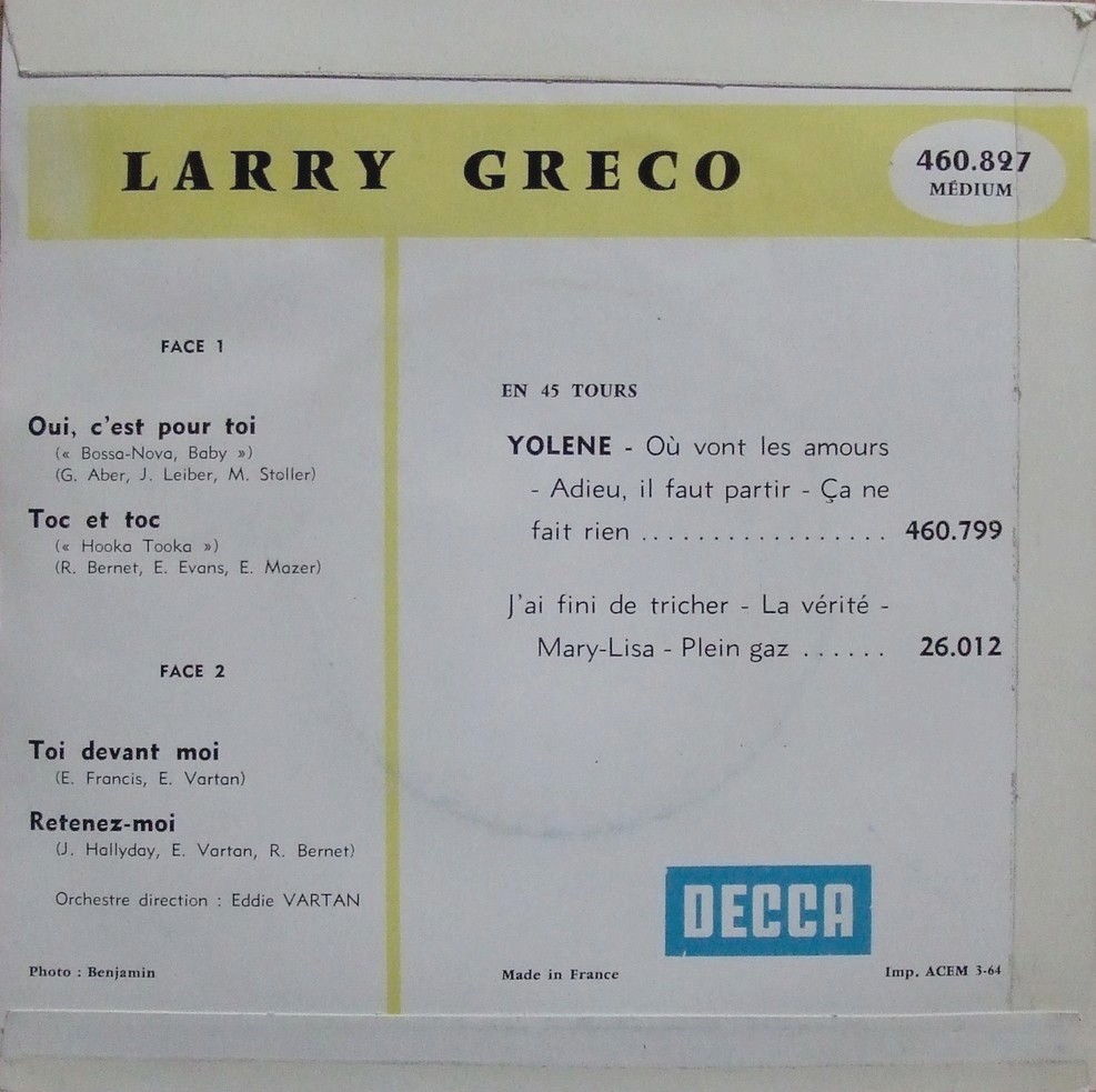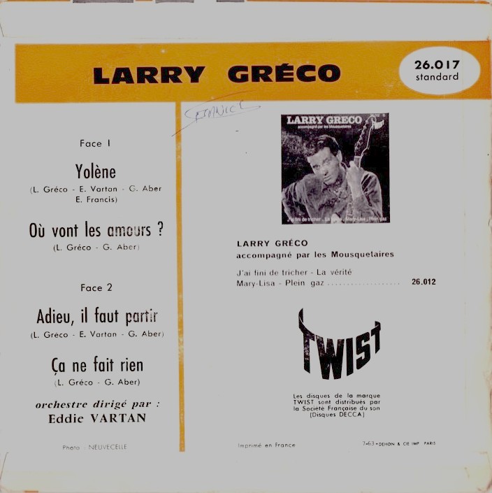 Larry Greco, geboren als Claude Degallier am 15.6.1941 in der Schweiz - verstorben am 15.November 2015