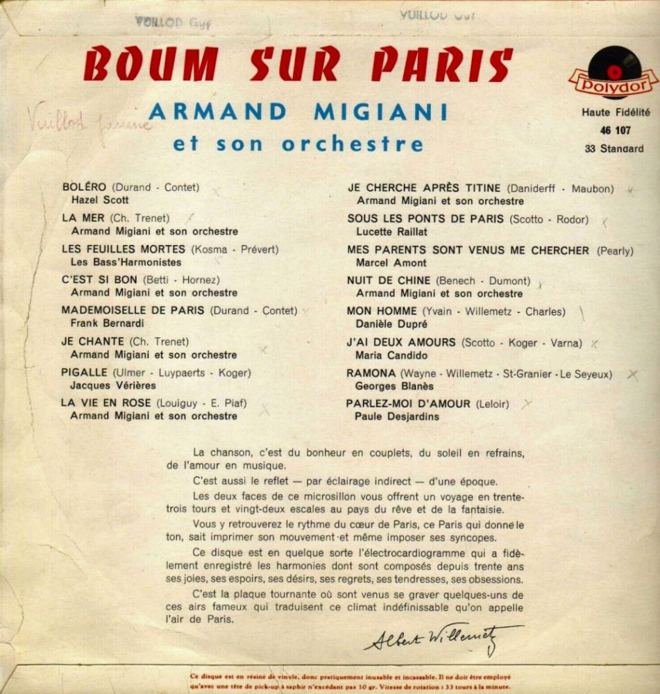 Der französische Orchesterleiter, Arrangeur, Komponist und Saxophonist Armand Migiani wurde am 22. Jänner 1919 in Monte Grimano, Region Marche, Italien, geboren und verstarb am 28. Oktober 2008 in Précy, Departement Cher, Frankreich. Er verwendete auch die Pseudonyme Armando de la Trinidad und Billy's Sax.