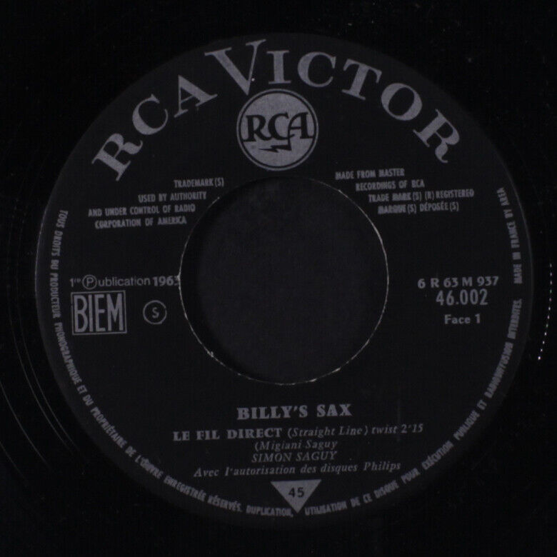 06 63....46.002....BILLY’S SAX..Le fil direct (Straight Line) (6 R 63 M 937)/La vie est belle (Killer Joe) (6 R 63 M 938)