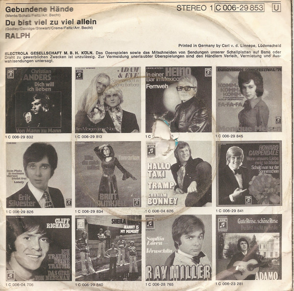 Ralph/Ralph Singers - Gebundene Hände/Du bist viel zu viel allein