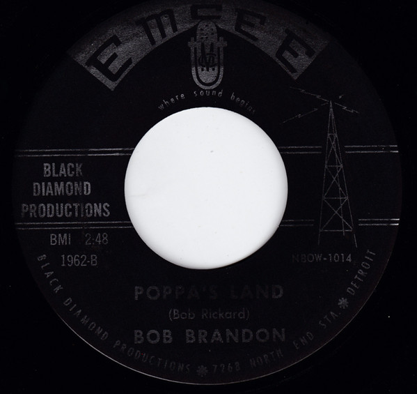 Dieter hat mich mit seinem Beitrag über Arizona Weston auf das Label EMCEE aus Detroit, Michigan, aufmerksam gemacht, von dem ich sehr mangelhafte Daten besitze und da ist mir der Name Bob Brandon aufgefallen. Weiteres habe ich weder bei meinen Aufzeichnungen, noch im Netz gefunden. Man findet zwar im Netz einige Bob Brandons, aber entweder passt das Alter nicht oder die Identität ist sehr fraglich. Ein Fall also für uns Forscher.
