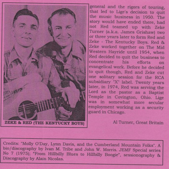 Im Jahre 1955 tat sich Zeke Turner mit Red Turner zusammen (links klicken), der nicht nur auf der Bühne, sondern auch im zivilen Leben Turner hieß und zwar Ulysses Turner.