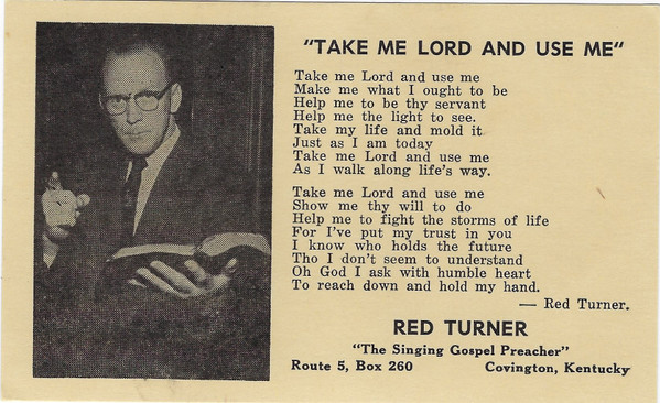 Der Mandolinenspieler und Sänger Red Turner wurde als Ulysses "Red" Turner am 17. März 1916 in Middlesboro, Kentucky, geboren. Er verstarb am 6. September 1995. Ab etwa 1947 waren er mit der Mandoline und sein Bruder Monroe ”Lige” Turner mit der Gitarre auf RADIO ARTIST RECORDS, MERCURY und auf IMPERIAL als Turner Brothers unterwegs und danach begann sein ”Vinyleinstieg” mit einem neuen Partner, der sich Zeke Turner nannte, aber nur auf der Bühne, denn sein richtiger