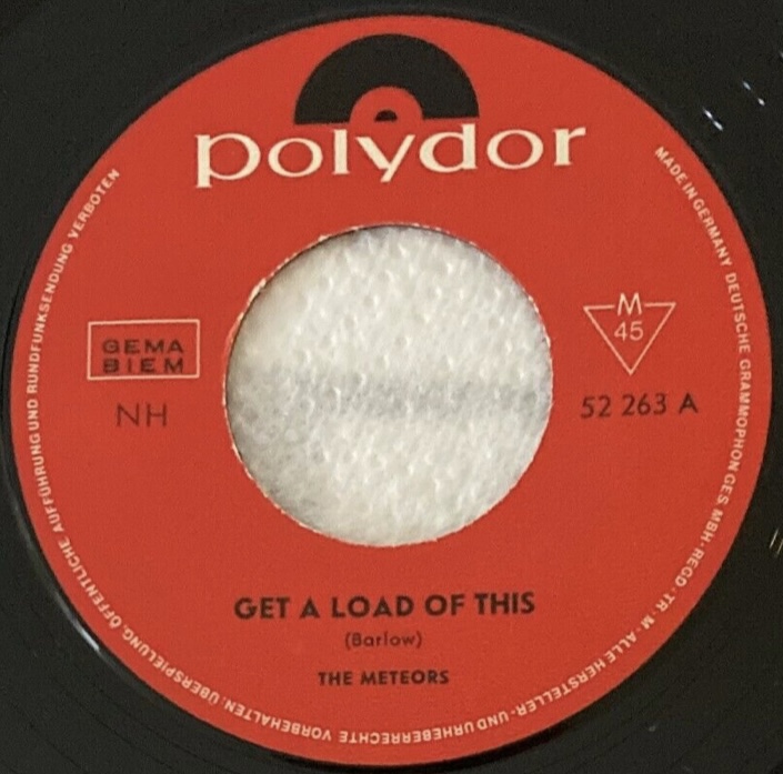 This record was issued in the U.K. (on Polydor with the same cat # as the German release) in, probably, late March or early April 1964. The Meteors were a five piece group (from Scotland) with two lead singers, Billy Jensone and Carol Murray. Miss Murray was also signed to Polydor as a solo act according to the review I've just found in a Mid Wales newspaper's record column dated April 2nd '64....I've also just found, courtesy of the internet, The Meteors appeared on Scottish TV's Friday tea time pop show, Dig This (introduced by Pete Murray) on Friday 21st August '64.