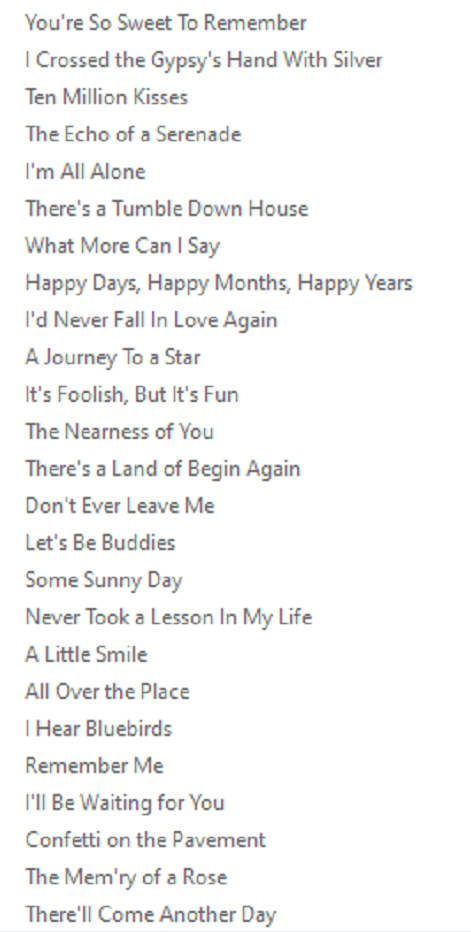 1939 machte Billy einige Monate lang einige Aufnahmen ohne die Orgel. Jede Aufnahmesitzung mit vier Songs würde zwei Titel wie The Organ, The Dance Band & Me und zwei für Billy Thorburn and his Music produzieren. Zu den Sängern vor dem Zweiten Weltkrieg gehörten Helen Raymond, Terry Devon, George Barclay und Eddie Guray. Die junge Terry Devon war eine Carroll Levis Discovery und trat Billys Band im Alter von nur 15 Jahren bei. Sie blieb bei Billy, bis sie alt genug war, um sich bei der ENSA anzumelden.