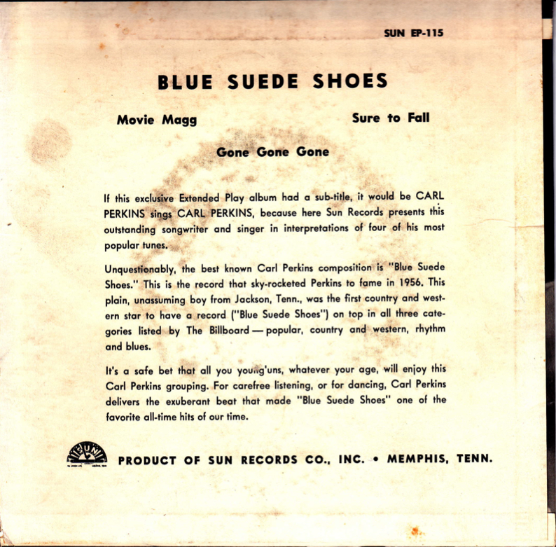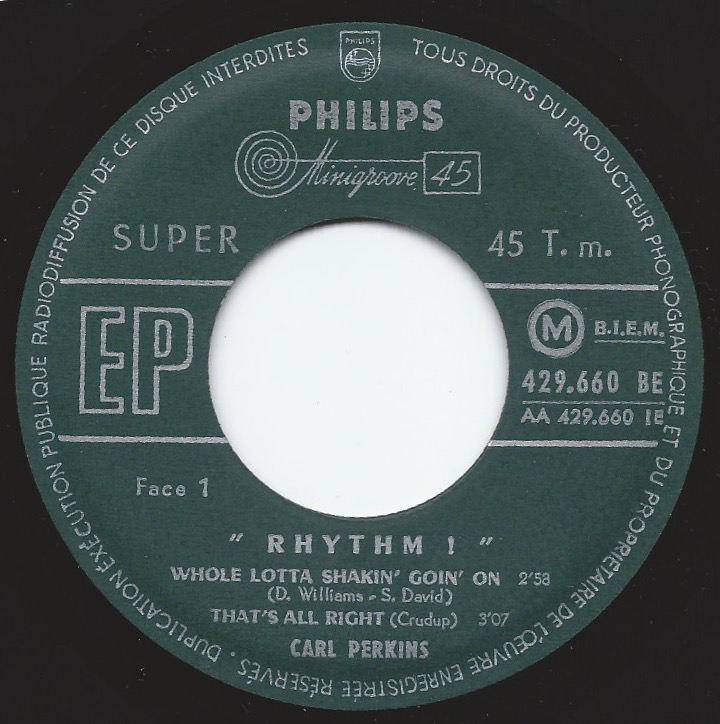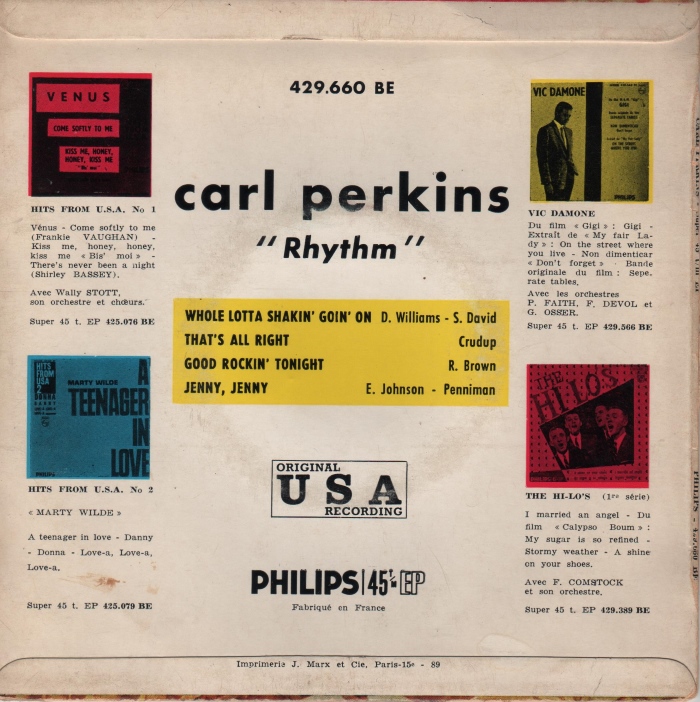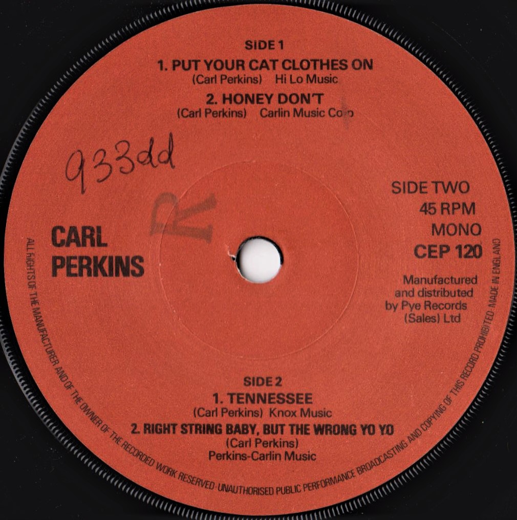 so viele EP's von Carl Perkins kann es eigentlich nicht geben. Hier das Cover einer US-Columbia EP aus 1958.