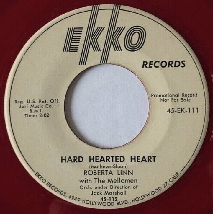 01 55....45-112....ROBERTA LINN with The Mellomen Orch. under Direction of Jack Marshall..Hard Hearted Heart (45-EK-111)/ROBERTA LINN Orch. under Direction of Jack Marshall..It’s Just A Wedding Ring (45-EK-112)