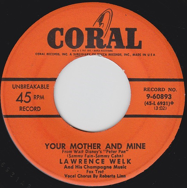 11 52....9-60893....LAWRENCE WELK And His Champagne Music Vocal Chorus By Roberta Linn..Your Mother And Mine (45-L 6931)/LAWRENCE WELK And His Champagne Music Vocal Chorus By Larry Hooper..Oh, Happy Day (45-L 6932)