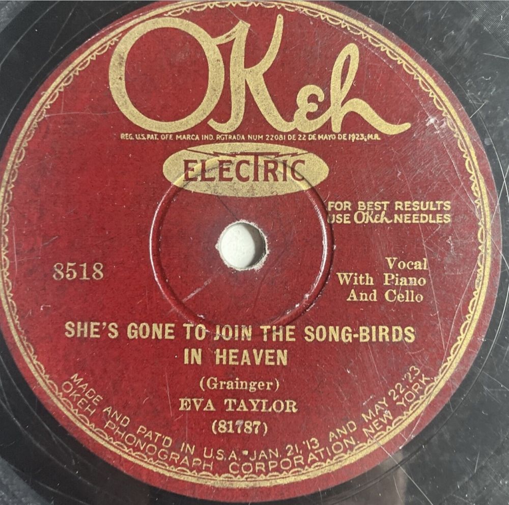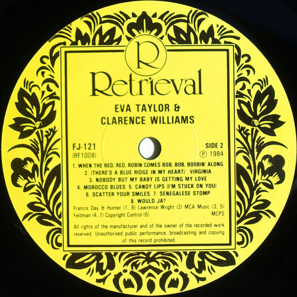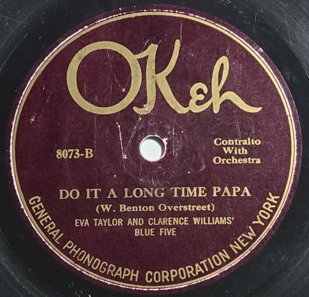 Trotz der Fragmentarität ihrer Aufnahmen war Eva Taylors Repertoire weitaus vielfältiger, wobei der Schwerpunkt eindeutig eher auf dem Pop- als auf dem Blues-Segment lag. In diesem Zusammenhang ist die Zusammenarbeit zwischen Taylor und dem Society-Sänger Lawrence Lomax interessant. Im November 1923 duellierten sie sich bei “Old Fashioned Love“ und “Open Your Heart“, zwei Stücken aus der überaus erfolgreichen Musicalkomödie “Running Wild“. Der Grund für dieses spezielle Duo ist schwer zu ergründen, doch Männer mit tiefer Tenorstimme, die die Melodie sangen, und Frauen mit hellerer Stimme, die die Harmonie übernahmen, waren in gewissen Kreisen sehr beliebte Paarungen und könnten ein Versuch gewesen sein, Eva Taylor in die Gesellschaft und den Markt einzuführen.