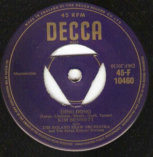 02 55....45-F 10460....KIM BENNETT with THE ROLAND SHAW ORCHESTRA and THE PETER KNIGHT SINGERS..Ding Dong (DRF.20130)/KIM BENNETT with THE ROLAND SHAW ORCHESTRA..Melody Of Love (DRF.20016)