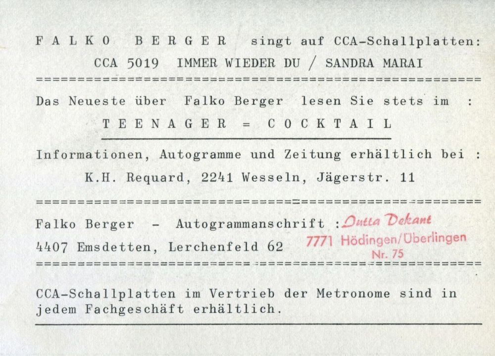FALKO BERGER war 1966 kurz bei CCA mit einer