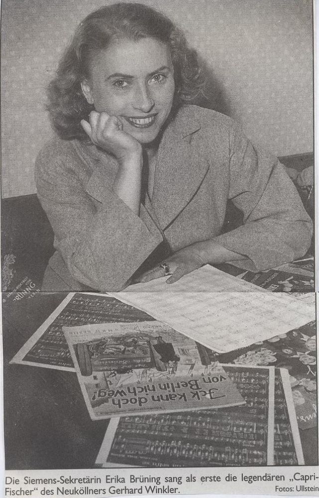 BRÜNING, ERIKA * 1910, + 19. Januar 1973, Sängerin, blond, zierlich, mit sympathischer Stimme,