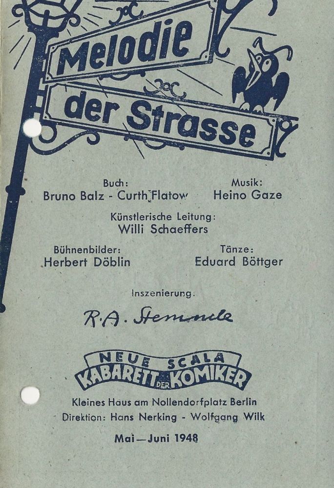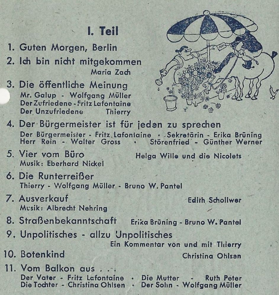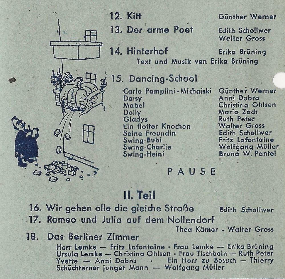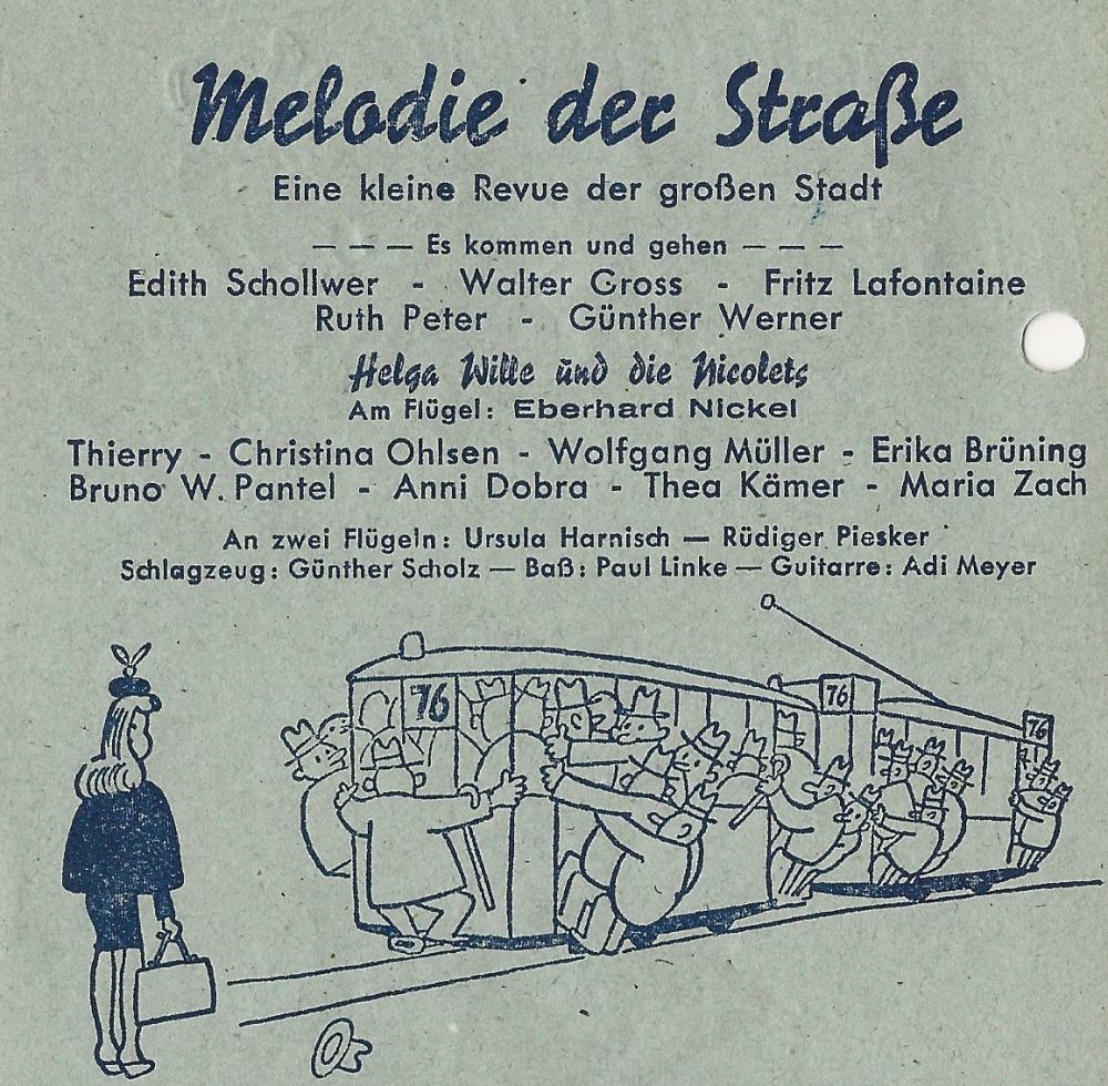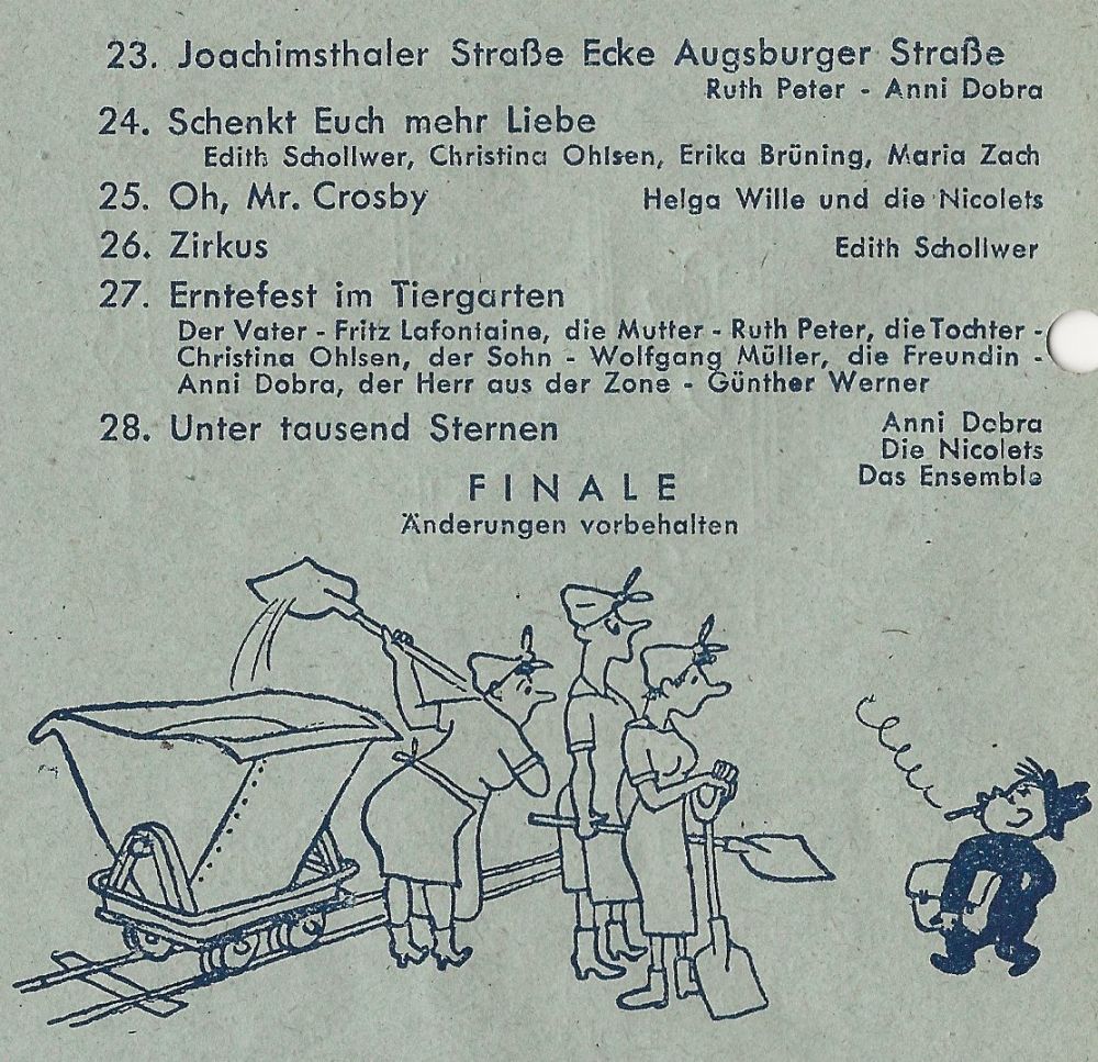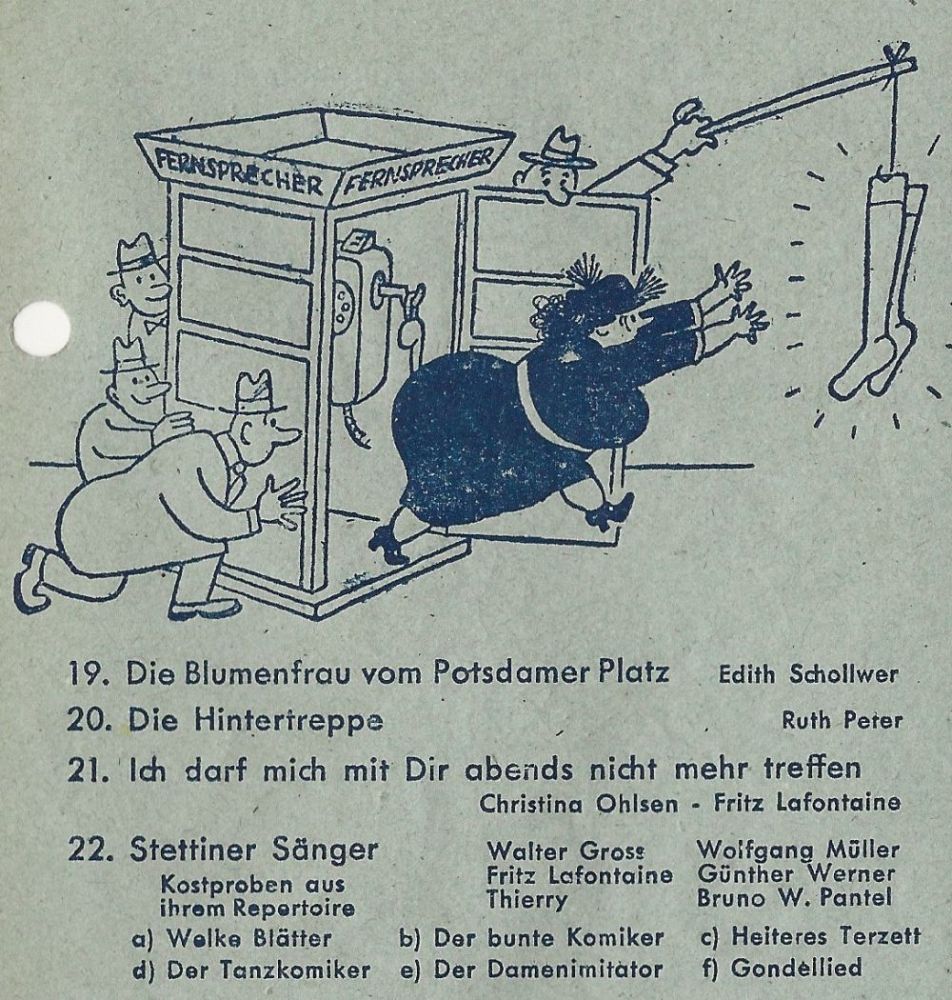Gloria ("Ein musikalischer Berlin-Bummel" mit ERIKA BRÜNING, WERNER HASS, FRED OLDÖRP, RUDOLF SCHERFLING, sen MONACOS, dem TRIO SORRENTO),