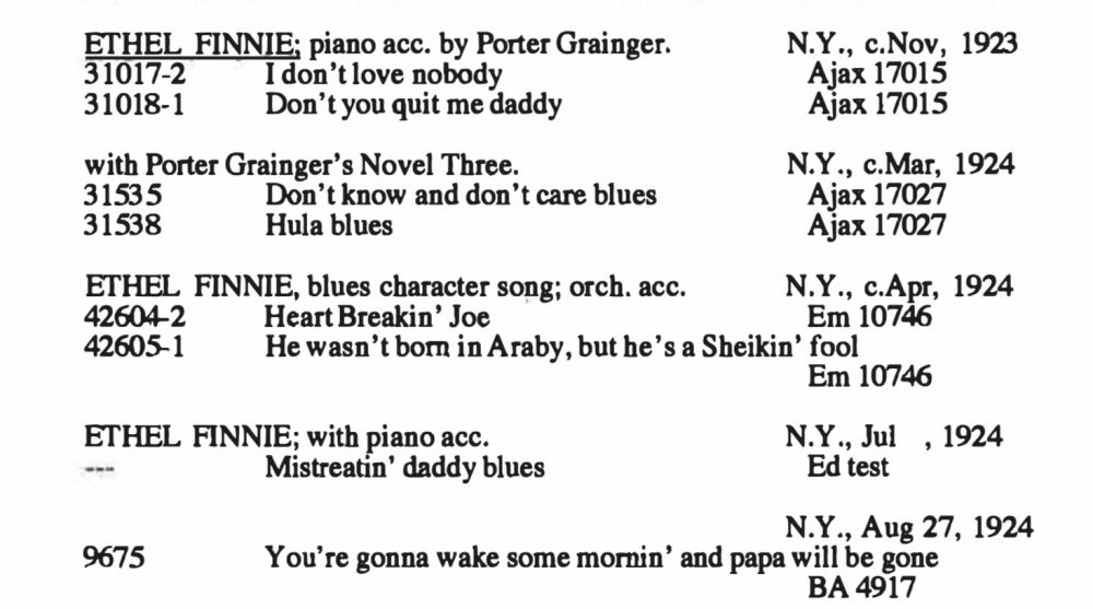 00 24….170??…. Ethel Finnie (Porter Grainger at Piano)..Don't Know and Don't Care Blues/Hula Blues