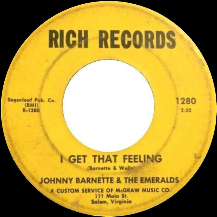 ?? 61....1020....JOHNNY BARNETTE..I Get The Feeling (R-1280)/Our Last Goodbye (---------)