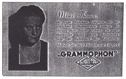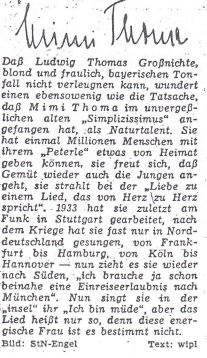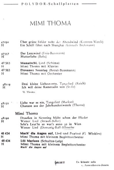 THOMA, MIMI (HERMINE) * 09.10.1909 in München, + Mai 1968 in Köln, Sängerin, Großnichte Ludwig Thomas,