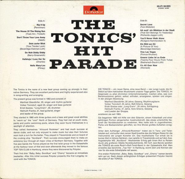 Unter der Rubrik über THE RAVERS hatten wir auch zu THE TONICS einige