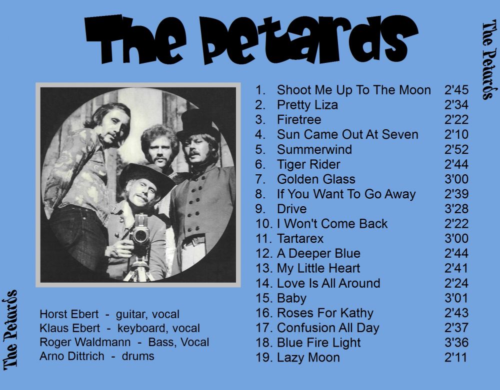 Ursprünglich auf Französisch:'Pitàrd', wurde das Wort auf dem Umweg über New Orleans zu einem englischen Begriff. Die Betonung liegt auf der 2. Silbe, aber der hessische Volksmund hat daraus'Piitarts' gemacht. Oder in Koseform ob'rhessisch'Peddarts'. Als die Gruppe später ihren Namen in'Pet Arts' ändern wollte, um dem Zeitgeist zu entsprechen, war es leider schon zu spät. Es kann ausgeschlossen werden, dass die Band damals wusste, was Pétard heute auf Französisch bedeutet: Es ist eine zeitgenössische Beschreibung für einen Joint. Dann hätten sie wahrscheinlich andere brillante Ideen gehabt. Alle vier gaben in einer offiziellen Pressemitteilung an, dass ihr Lieblingsgetränk Milch sei. Tatsächlich war ihr Bühnenbild schon immer viel psychedelischer als ihre alltägliche Realität.