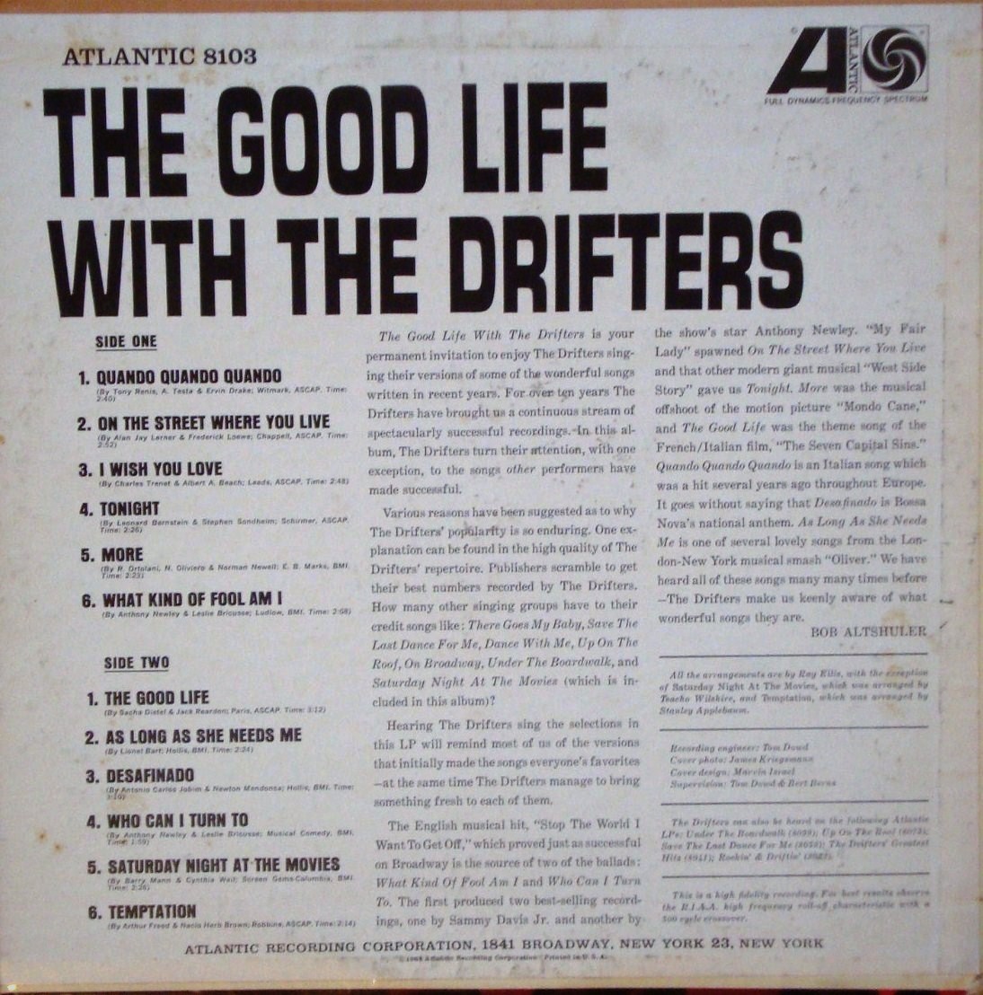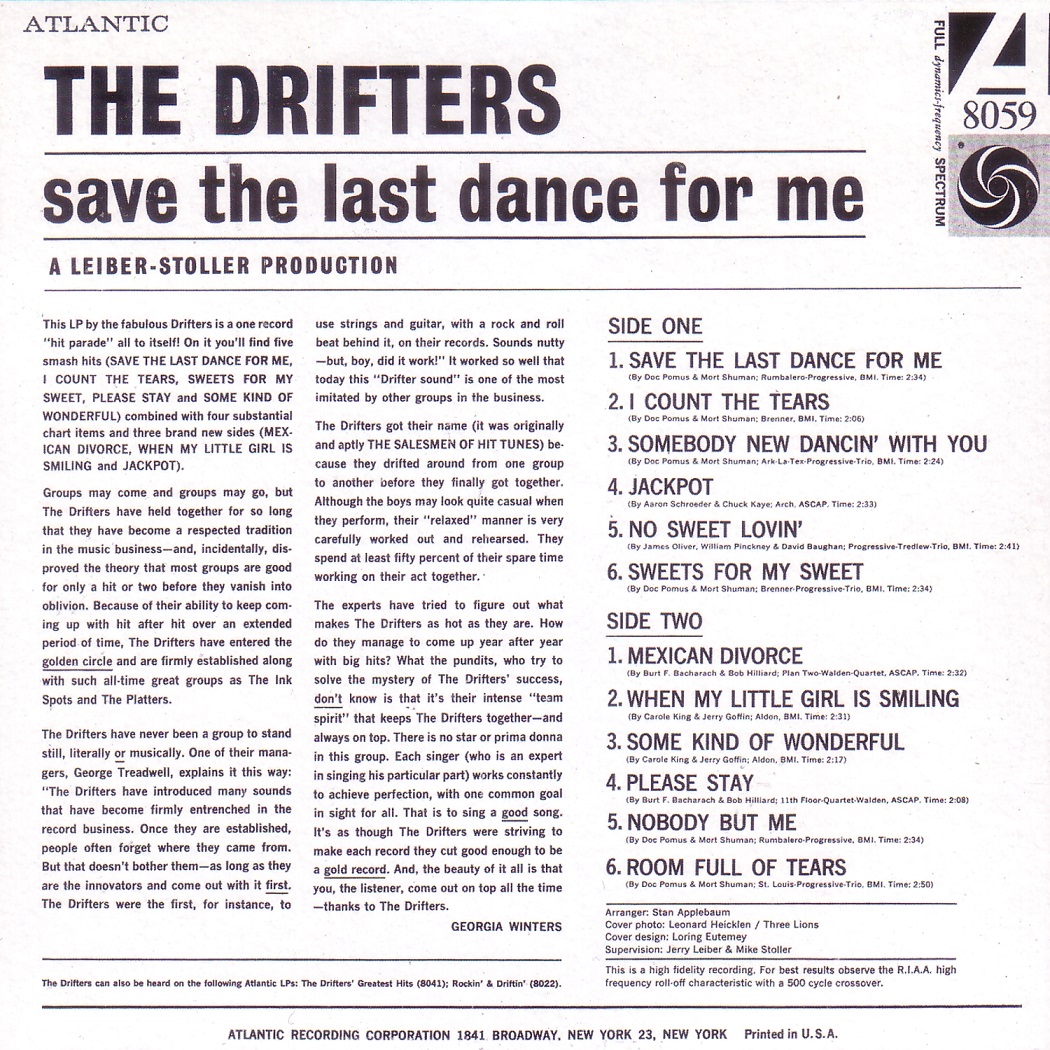US LP ATLANTIC 8041 - MONO - 1960 - The Drifters - The Drifters Greatest Hits +