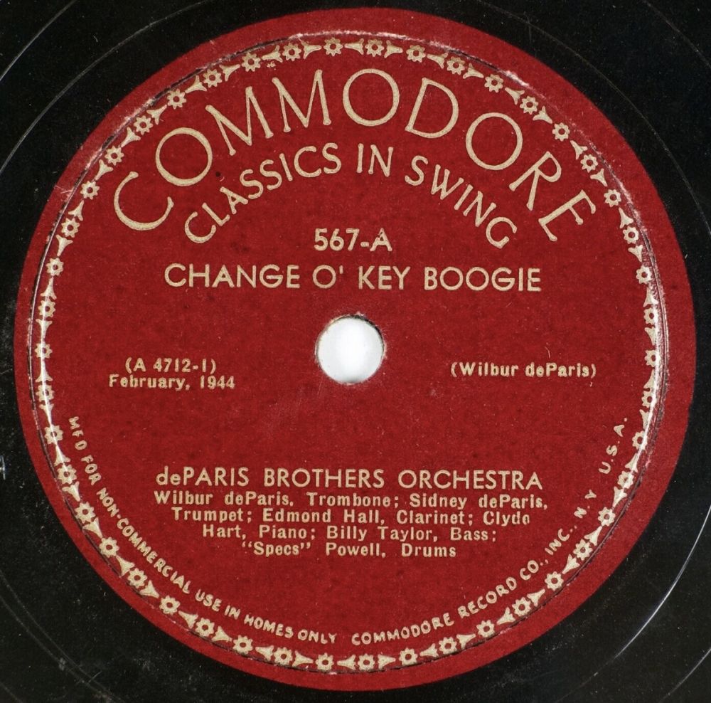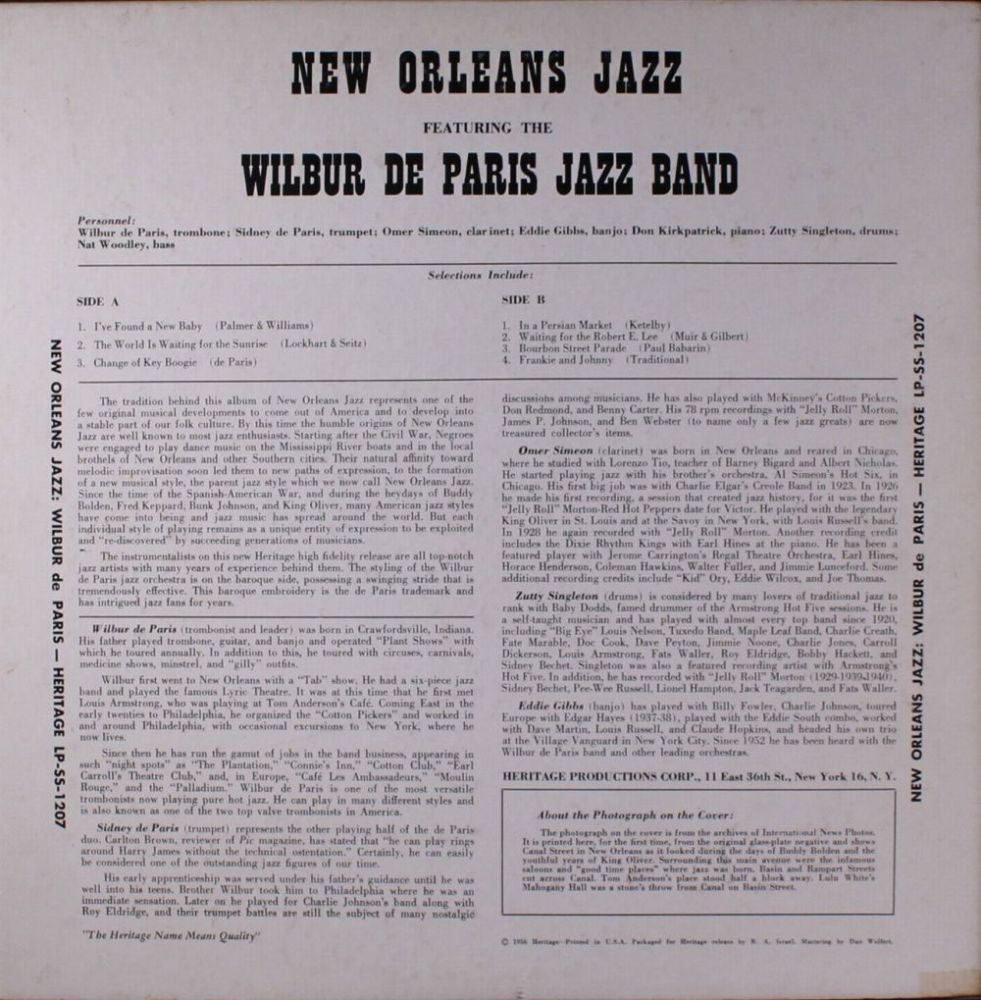 08 60....A 45022....WILBUR DE PARIS -NEW- NEW ORLEANS JAZZ Sidney de Paris, tp; Wilbur de Paris, tb; Omer Simeon, cl; Don Kirkpatrick, p; Zutty Singleton, dm; Eddie Gibbs, bjo; Nat Woodley, b. ..I Found A New Baby (45022 A)/Bourbon Street Parade (45022 B)