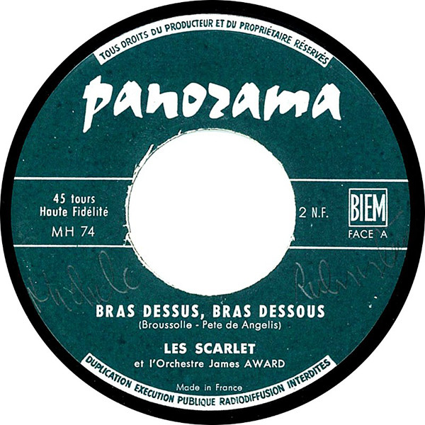 ?? 60....MH 74....LES SCARLET et l'orchestre James AWARD..Bras dessus, bras dessous (FACE A)/Orchestre direction ANDRÉ GIRARD..Cha cha d'Auvergne (FACE B)