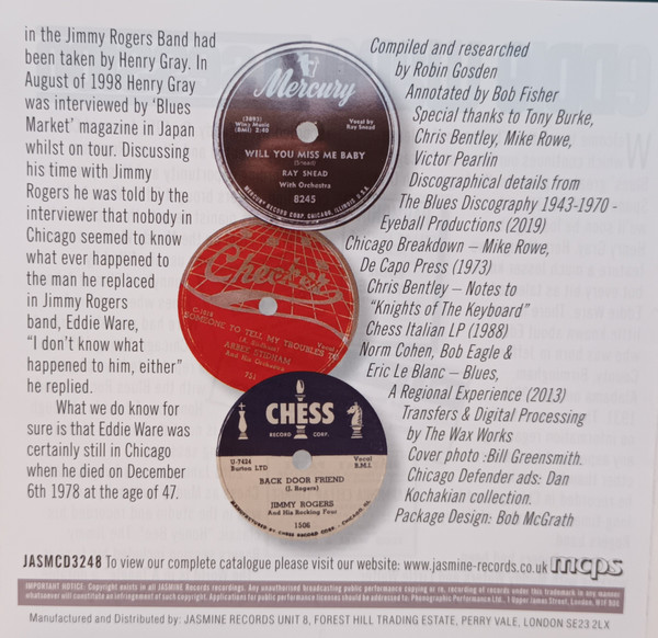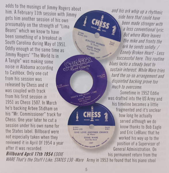 war ein Blues-Pianist, Sänger und Bandleader aus Chicago. Eddie W. Ware wurde in Birmingham, Alabama, geboren. Sohn von Gin Ware und Johnnie Lee Daniels. Bei den frühen Chess-Aufnahmen von Jimmy Rogers war er die Hauptstütze am Klavier. Nach einer Session erlaubte ihm Chess eine eigene, aus der der kleine Hit „Lima Beans“ hervorging. Er wechselte zu Mercury Records, wo er zwei Sessions mit dem Sänger Ray Snead unterstützte, darunter „I'm a Good Rocking Baby“, das bis heute sehr beliebt ist. Er hatte diesmal eine weitere Chess-Session, in der er Arbee Stidham unterstützte. Er nahm auch mit den Blues Rockers, Blue Smitty, Eddie Chamblee, Honeyboy Edwards und möglicherweise Johnny Shines auf. Seine letzte Aufnahme war wieder für States Records mit nur zwei Titeln. Bis 1953 verließ Ware die Aufnahmeszene für eine Armeekarriere und wurde Supervisor in der General Services Administration. Danach verliert sich seine Spur.