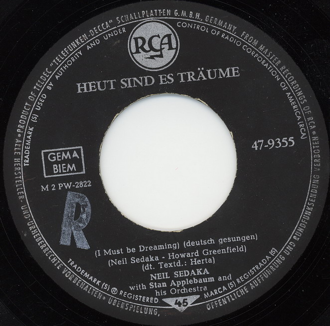 hier das Cover der ersten deutsch gesungenen Neil Sedaka Single.