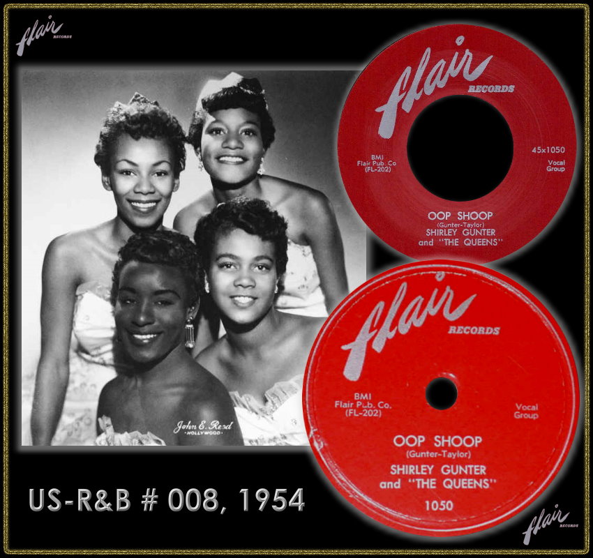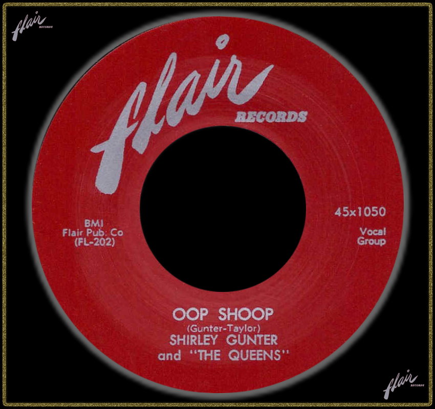 Eines Tages fiel ihnen beim Improvisieren am Piano in Shirley’s Wohnzimmer mit “Oop Shoop“ eine ähnliche Nonsens-Textzeile wie beim Chords-Hit “Sh-Boom“ ein. Mit dem Saxophonisten Maxwell Davis gingen sie ins Studio und polierten ihr eigenes Arrangement derart auf, dass Joe Bihari, Chef des Labels, Zustimmung signalisierte und den Titel im August 1954 mit Shirley Gunter & The Queens auf den Markt brachte. Zwei Monate später erreichte der Titel die R&B-Charts (#