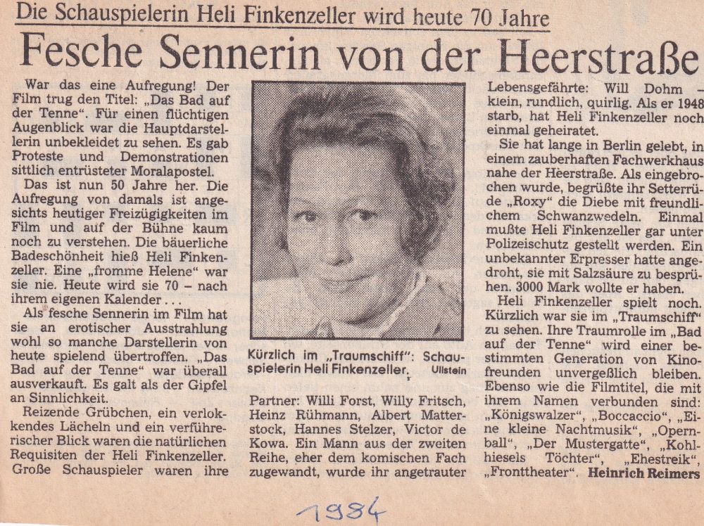 Die Schauspielerin und auch Sängerin Heli Finkenzeller