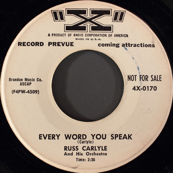 00 56….45-9705…. Russ Carlyle and his Orchestra..Hold On Tight/Maritana00 56….45-9772…. Russ Carlyle and The Coachmen..Stashu Pandowski/I Don't Want To Set The World On Fire