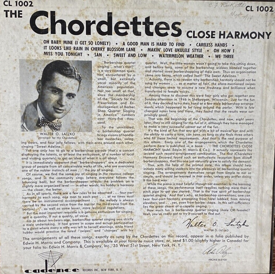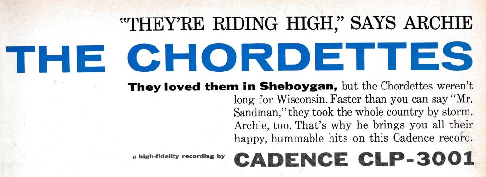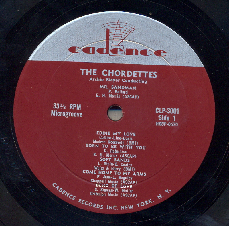 US LP CADENCE NR. CLP 3001 - maroon label - 1957 + The Chordettes +