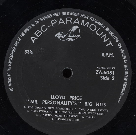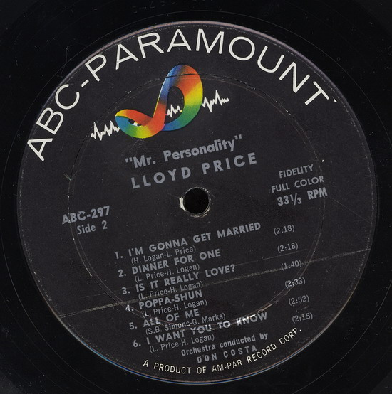 US LP ABCS Nr. 366 - jahr 1961 - Llyod Price Sings the Million Sellers +