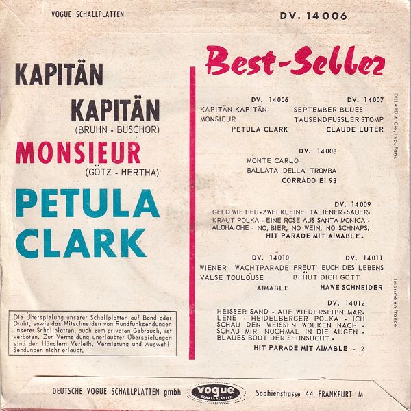 08 62....DV. 14006....Petula Clark mit dem Orchester Henry Mayer..Kapitän, Kapitän/Monsieur