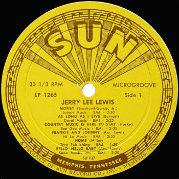 US LP SUN NR. SLP 1265 - gelbes label -1961 - Jerry Lee Lewis - seine 2. Lp auf Sun+