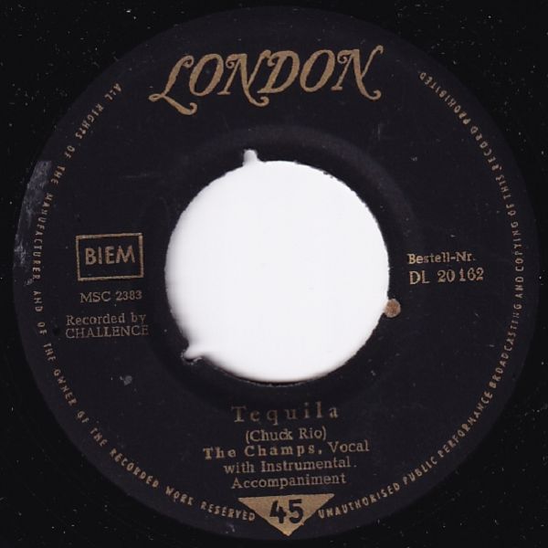 “Tequila“ von den Champs (US: CHALLENGE 1016; D: LONDON DL 20 162): (links klicken)