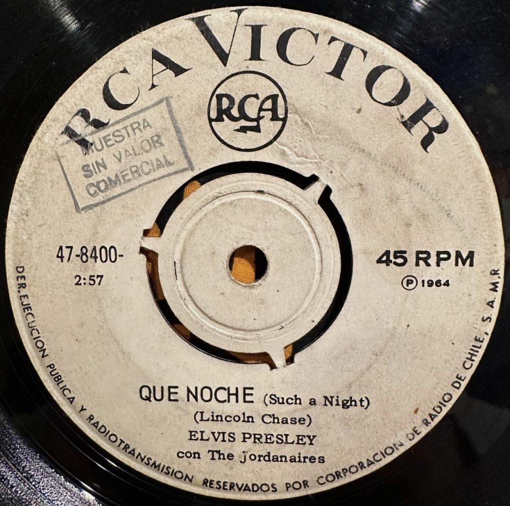 There’s a very rare photograph (and report) of Elvis Presley and Lucho Gatica (Chile’s most popular crooner then) on the set of “Jailhouse Rock”! on page 14 of ECRAN #1385,