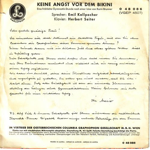 Das hat zwar nichts mit Rock'n'Roll (Musik) aber sehr wohl mit Schallplatten (Vinyl) zu tun und paßt genau in die Zeit: Eine Gymnastik-Serie mit dem Titel "Keine Angst vor dem Bikini"