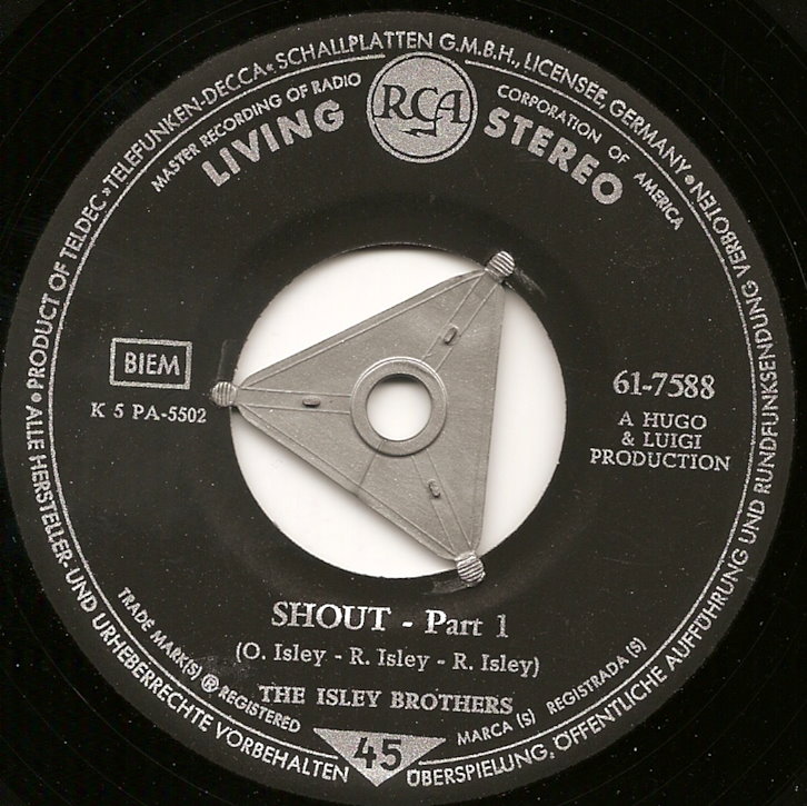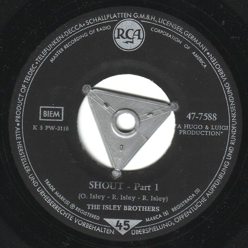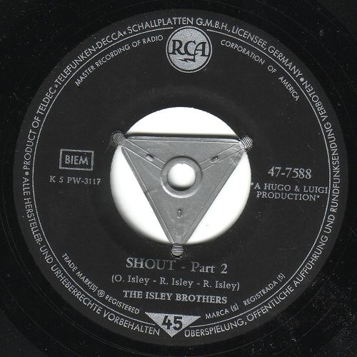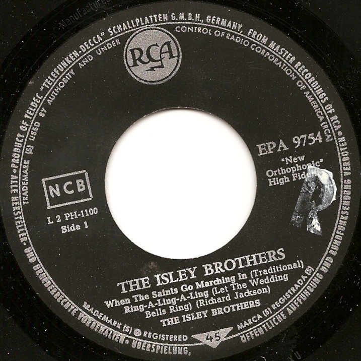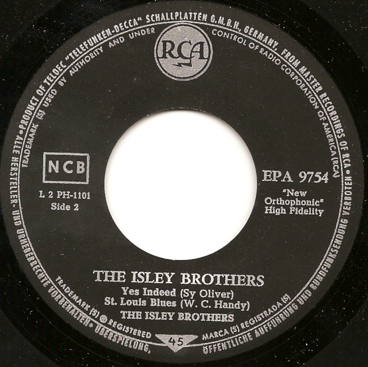 Soviel mir bekannt ist hat es bei uns bis 1962 nur zwei RCA-Singles von den Isley Brothers gegeben: "I'm Gonna Knock On Your Door"/"Turn To Me" (7503) und die gescannte Single. Ihr zweiter Chart-Hit "Twist & Shout" wurde bei uns erst durch die Beatles bekannt. Halt, falsch! Die Originalaufnahme dieses Titels von den Top Notes aus 1961, die nicht die Charts erreichte, gab es interessanterweise schon bei uns und zwar auf der deutschen ATLANTIC (70.100)