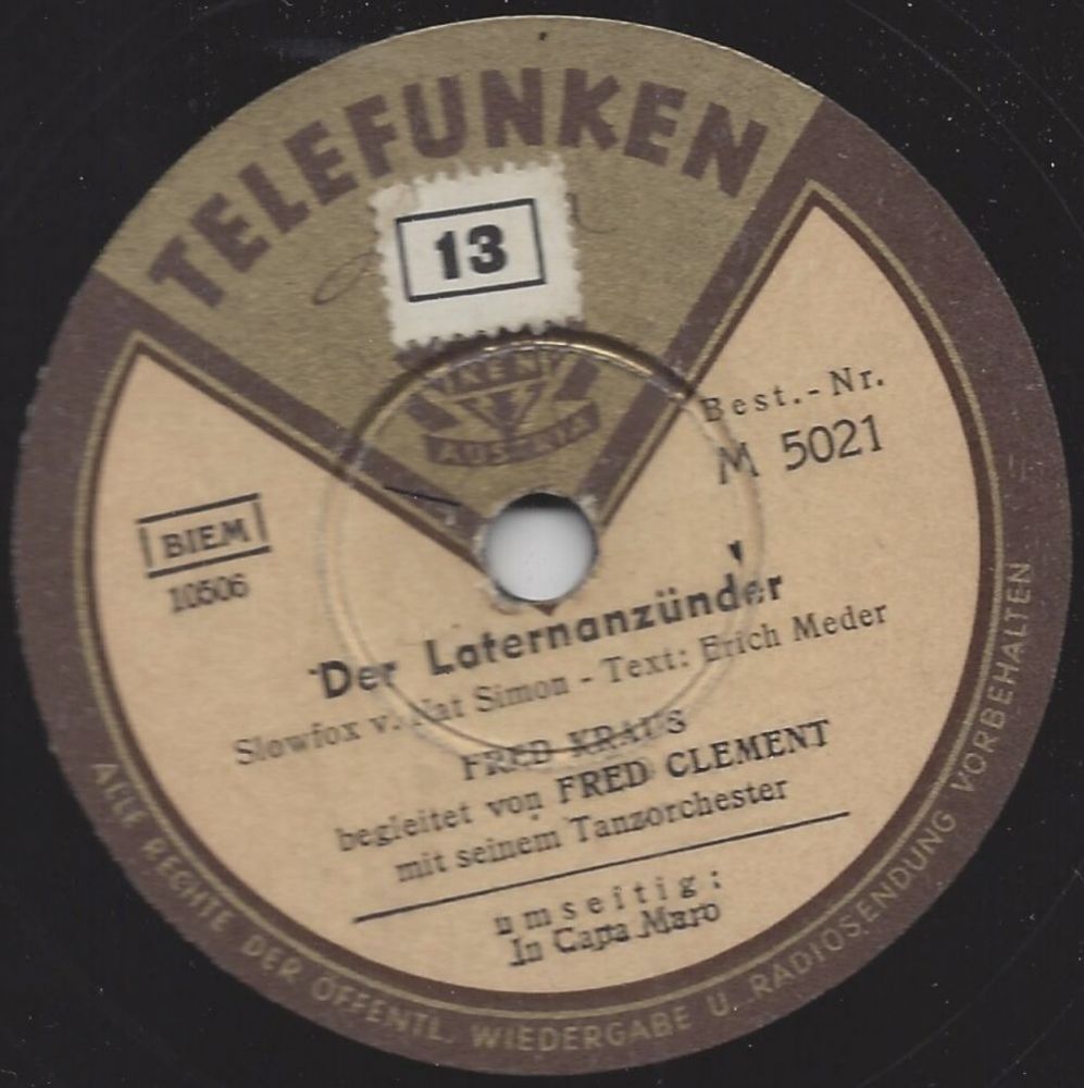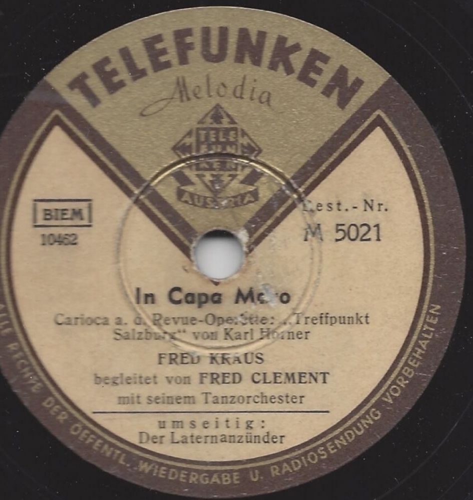 Für die Telefunken in Wien entstanden viele Aufnahmen, als Orchester Fred Clement und als Nine Serenaders.