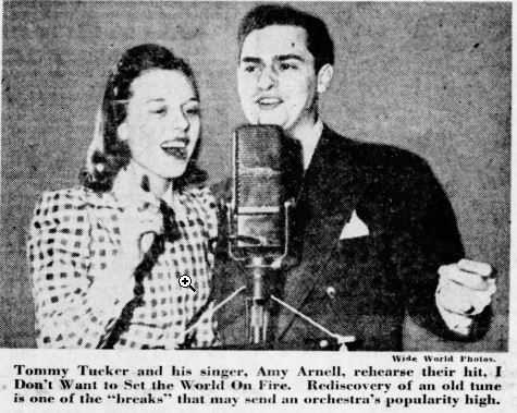 Montagnacht war der freie Abend der Band, also fuhren Tommy und Mrs. Tucker, Amy und der Manager der Band, Joe Galkin, eines Montags nach Philadelphia und kamen in Lew's Tavern vorbei, wo sie Bon Ron, einen Neger-Sänger und Mitglied des Trios The Three Keys einen Song singen hörten. Der gleiche Gedanke kam Tommy und Amy, als sie zuhörten: „Es ist das Lied für uns.“ Galkin erfragte den Namen des Liedes und Bon Bon erzählte ihm, dass es anderthalb Jahre zuvor von Harlan Leonard und seinem Orchester für Bluebird Records aufgenommen worden sei. Galkin ging nach New York und besorgte sich eine Kopie des Liedes; Tommy hat es arrangiert und Amy hat es gesungen. “I Don't Want to Set the World On Fire“ wurde ein Riesenhit und die Band, die bisher für One-Night-Stands etwa 500 Dollar pro Abend bekommen hatte, stieg in die höheren Preissegmente ein. Columbia nahm das Stück auf und verkaufte eine halbe Million Platten, und Amy bekam genug Gehaltserhöhung, um nebenbei einen Blumenladen in Hollywood zu eröffnen.
