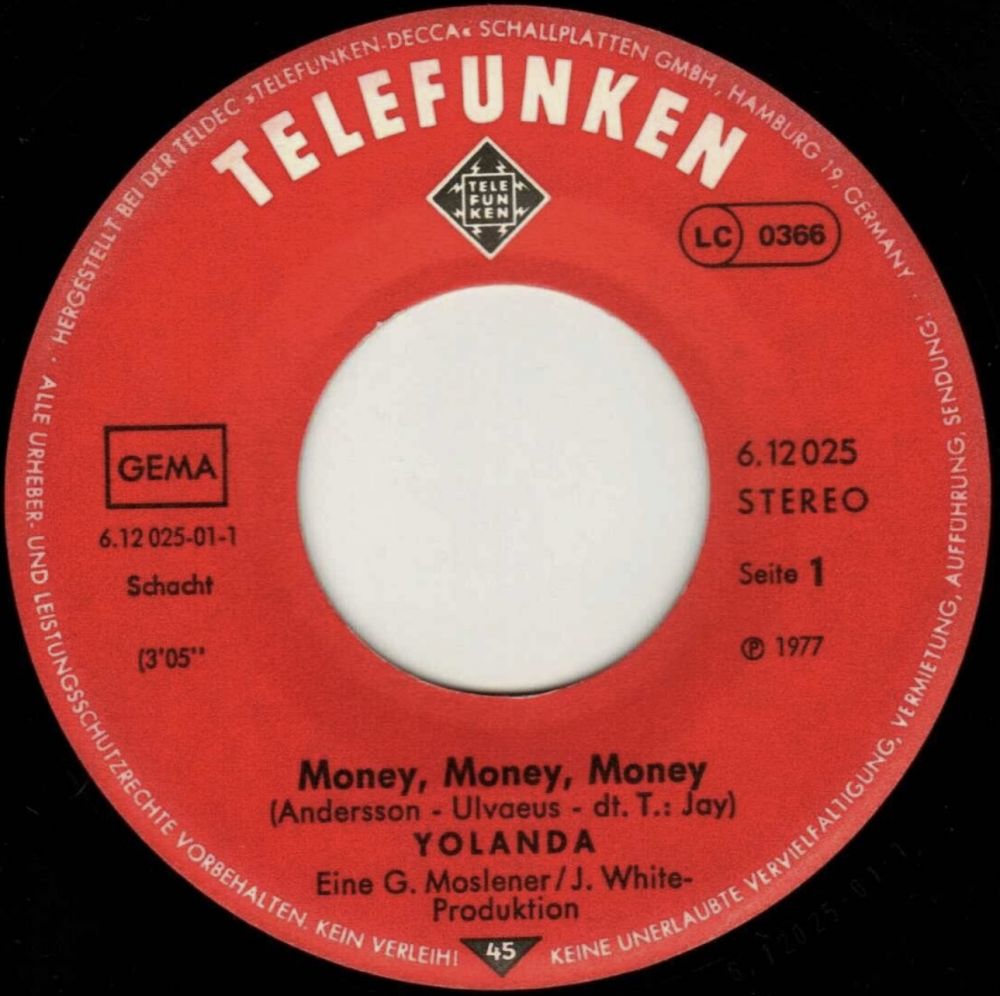 1977 Money, Money, Money (Money, Money, Money) / Die letzte Rose ist verblüht (Telefunken, 6.12 025 AC) - Produzent: Hans-Georg Moslener & Jack White