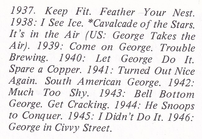 Vor allem in seinen frühen Kriegsfilmproduktionen machte Formby immer wieder seine Späße auf Kosten der Nazis. In der Spionagekomödie "Let George Do It beispielsweise, seinem wohl populärsten Film in der Heimat, begegnet er in einer Traumsequenz Adolf Hitler, haut ihm kräftig auf die Nase und schimpft ihn "Schwätzer". Versuche, mit seinen Filmen auch in den USA zu reüssieren, scheiterten jedoch; zu speziell britisch schien dort sein Humorverständnis.