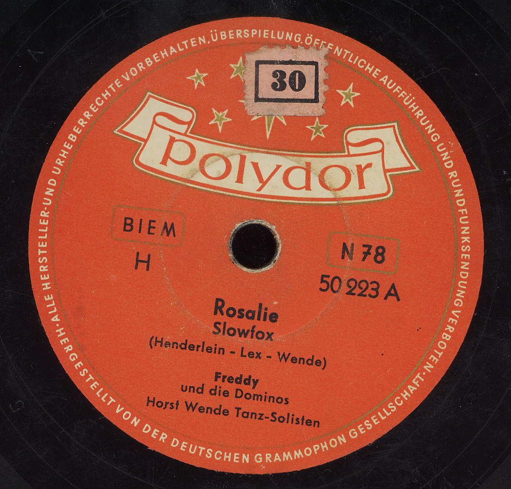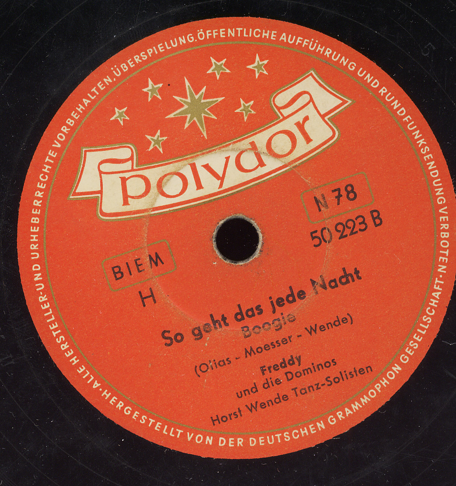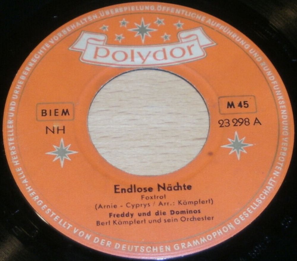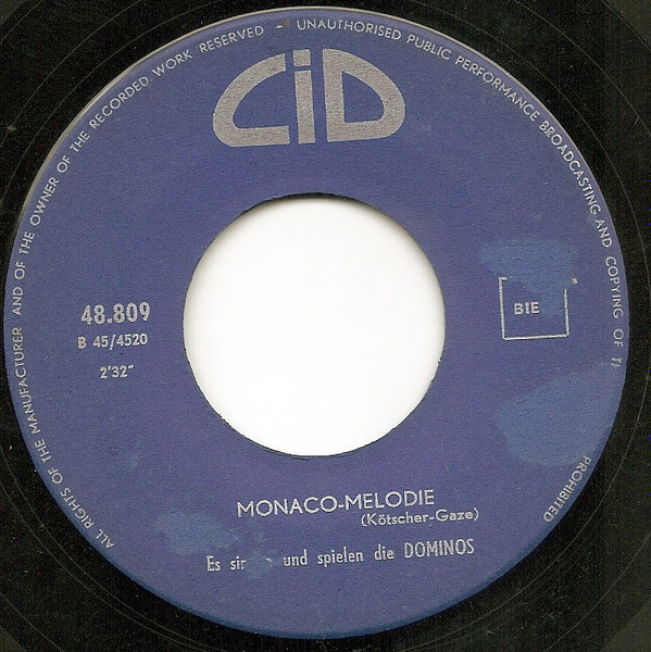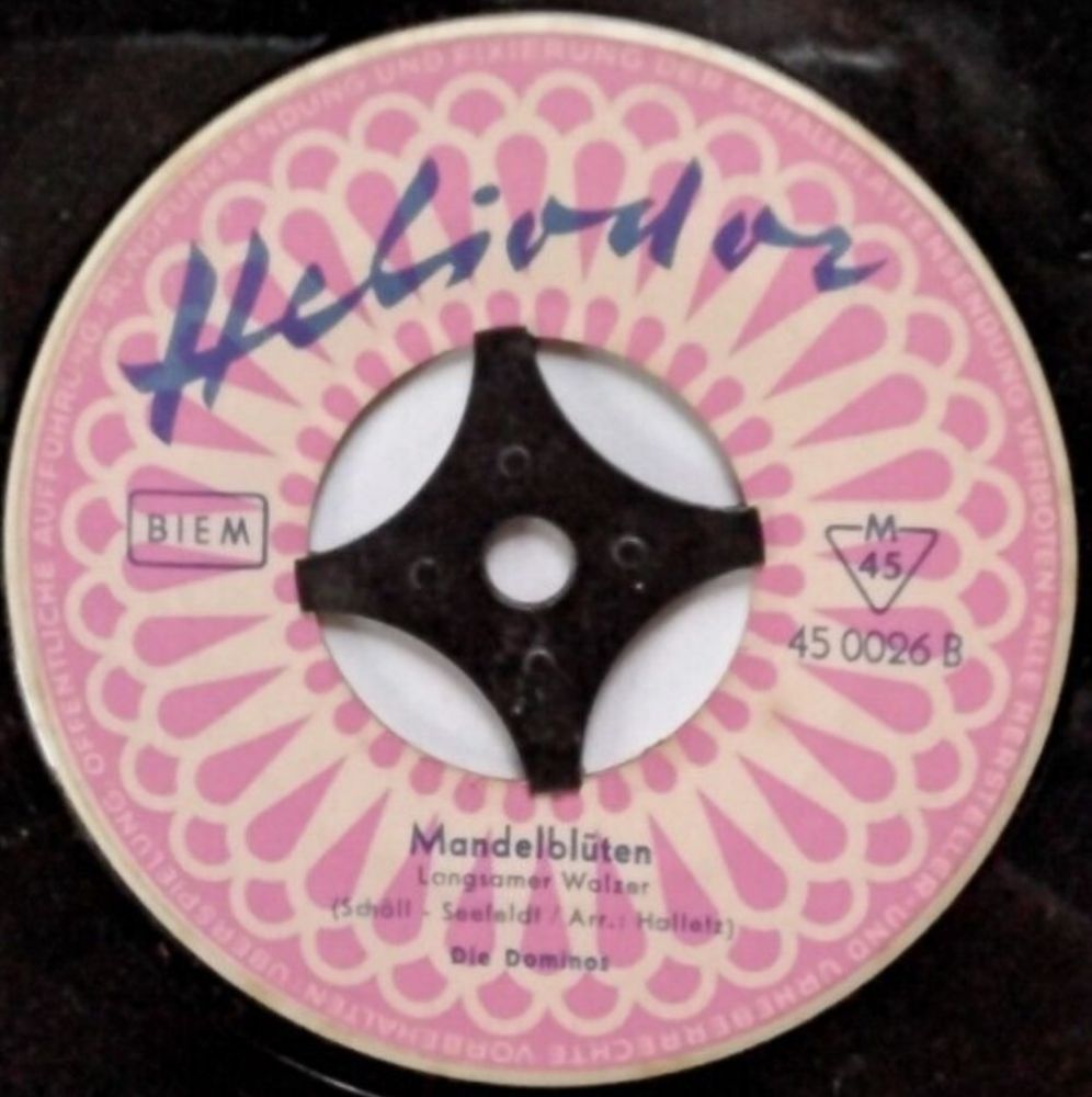 DOMINOS, Die (RUDI KREUZBERGER, HELGA SCHRAMM, INGE BUCHNER), Begleitensemble auf Heliodor (450026 "Ein Stern Für Jonny"/"Mandelblüten"-1956) u. Polydor (1956 Backing bei FREDDY-Aufnahmen)