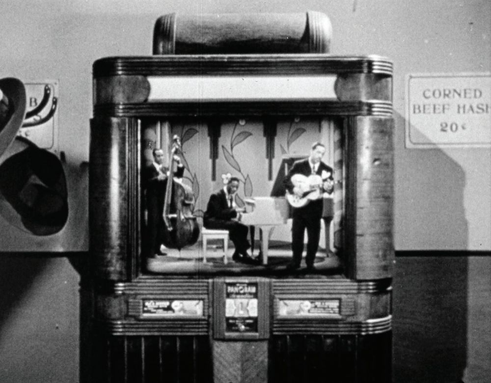 in die Movie-Jukebox und schaute mir Soundies an, mit Nat King Cole, Big Joe Turner, Ella Mae Morse usw.