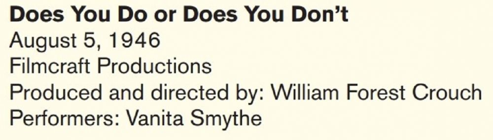 „ Vannie Smith, known professionally as Vanita Smythe (January 13, 1925 – January 18, 1994) was an American blues and jazz singer and actress. She was professionally active between 1945 and 1950, making eight soundies, two motion pictures and releasing a couple of singles“.