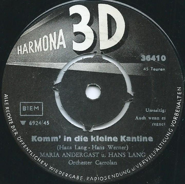 02 58....36410....MARIA ANDERGAST u. HANS LANG Orchester Carrolan..Auch wenn es regnet, kann es schön sein/Komm' in die kleine Kantine