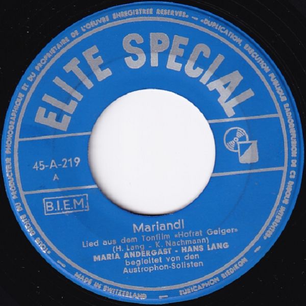 ?? 56....45-A-219....Maria Andergast, Hans Lang und die Austrophon-Solisten..Mariandl (219 A)/Du bist die Rose vom Wörthersee (219 B)