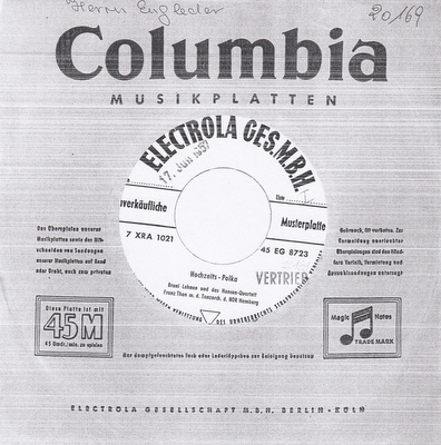 Electrola (u.a. 8580 "Gitarren-Tom"/"Schreib Mir, Wenn Du Glücklich Bist", 8660 "Ach War Das Eine Wunderbare Reise"/"Das Jodel Telefon", 8723 "Jolly-Joy Hat Einen Boy (Round And Round)"/"Hochzeitspolka (Wedding Polka)" & Das HANSEN-QUARTETT & FRANZ THON und Das Tanzorchester des NDR Hamburg)