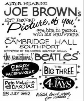 02. Februar 1962 Pete Maclaine and the Dakotas debütieren im Cavern. Die Band ist die erste Band aus Manchester, die in dem Club spielt.